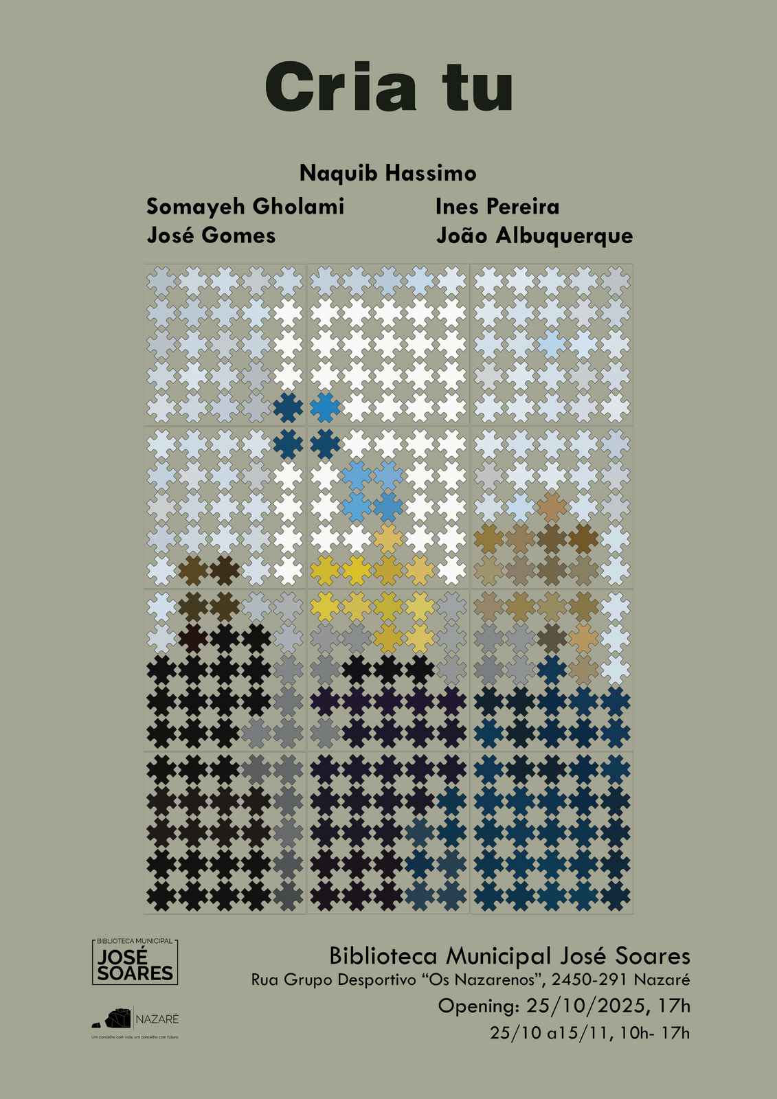 O Átrio da Biblioteca Municipal José Soares irá acolher, de 25 de outubro a 15 de novembro de 2025, a exposição “CRIA TU”, uma mostra coletiva que celebra a cor, a forma e a geometria como elementos de expressão artística e de diálogo entre culturas.
