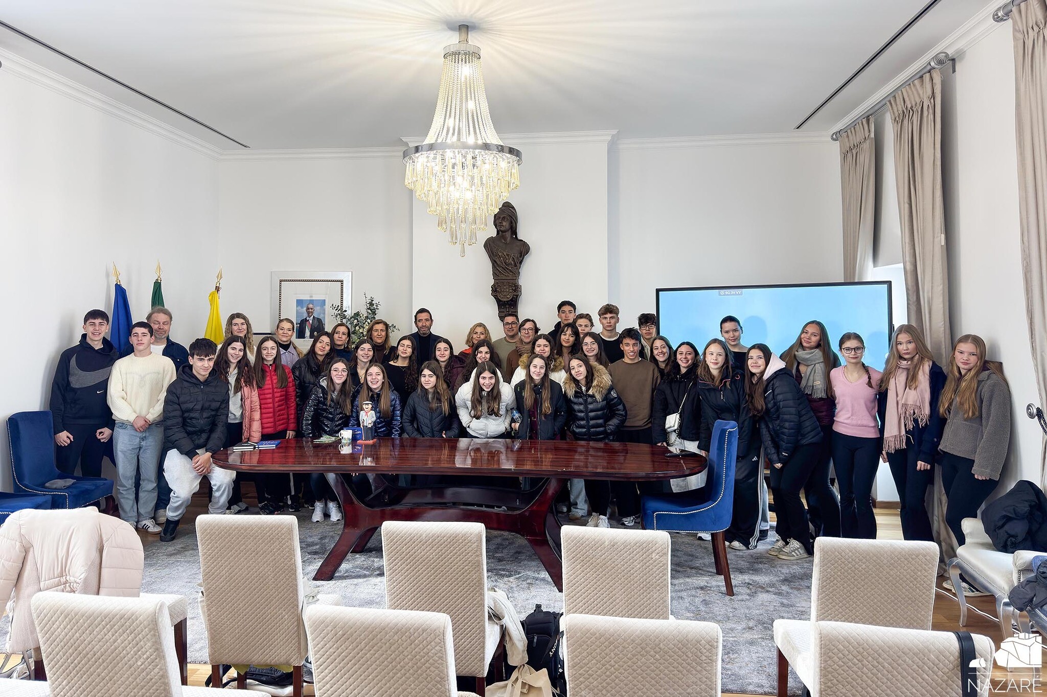 Os alunos Erasmus+, provenientes de Balaguer e Helsínquia, que se encontram no concelho da Nazaré, foram recebidos pelo presidente da Câmara Municipal, Serafim António, e pela vereadora Fátima Lourenço, no Salão Nobre dos Paços do Concelho, na passada terça-feira, 20 de janeiro.