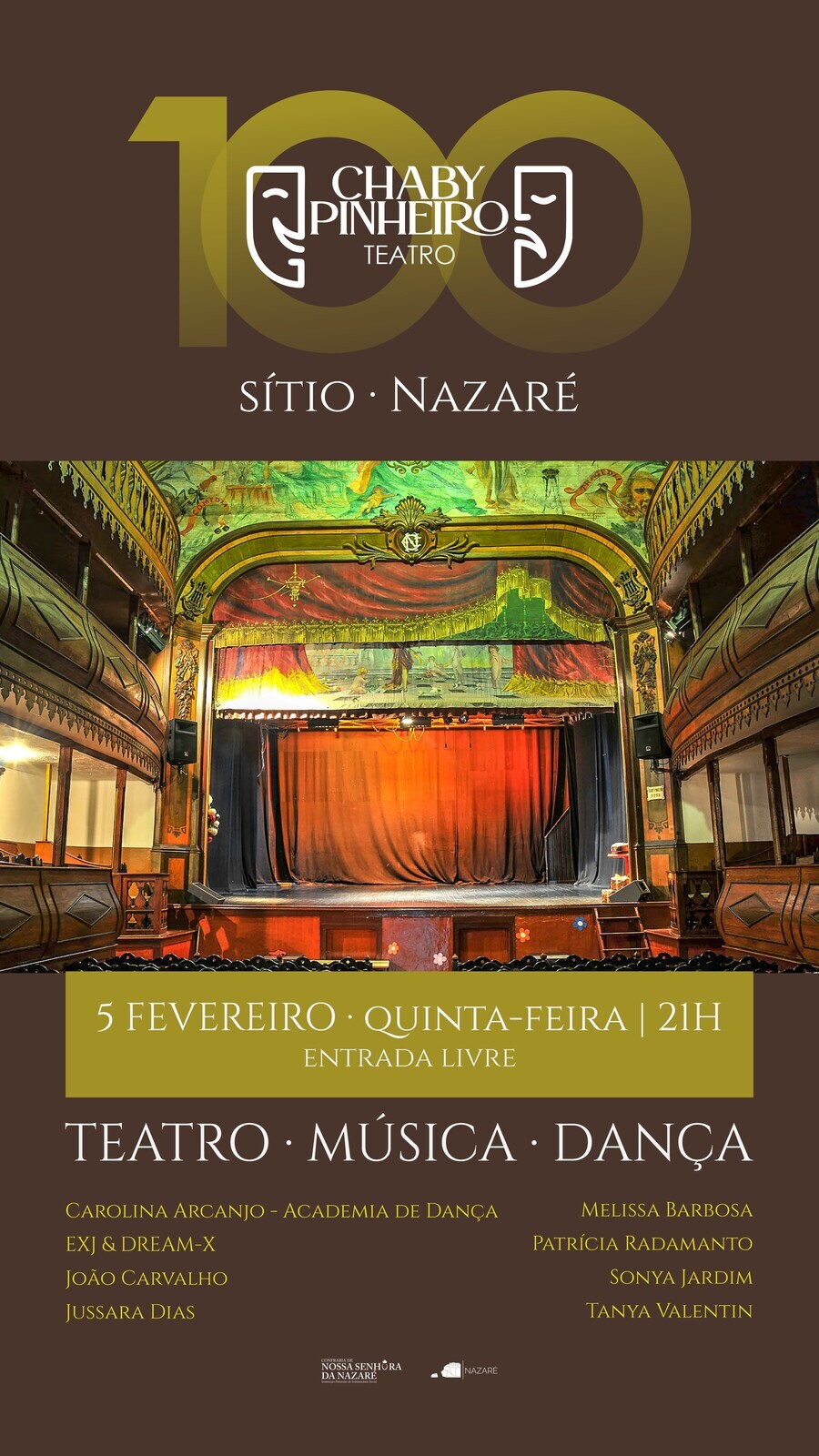 No dia 5 de fevereiro, pelas 21h00, o Teatro Chaby Pinheiro celebra 100 anos desde a sua inauguração com um espetáculo multidisciplinar, de entrada livre, criado especialmente para assinalar este marco histórico no coração do Sítio da Nazaré.