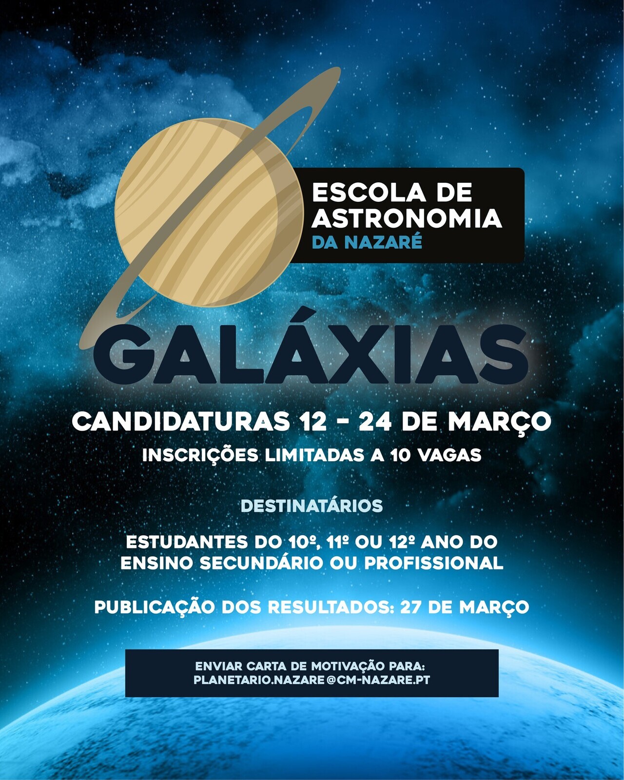 A Escola de Astronomia da Nazaré está a receber inscrições e as vagas são limitadas, pelo que as inscrições devem ser realizadas até ao dia 24 de março. Apenas 10 participantes entrarão na escola.