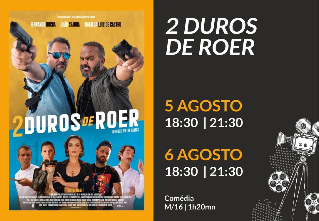 Fernando Rocha, João Seabra e Mafalda Luís de Castro dão vida a esta comédia de 2022 realizada por Victor Santos e que chega em agosto, em duas sessões, ao cineteatro da Nazaré.2 Duros de Roer será exibido nos dias 5 e 6 de agosto