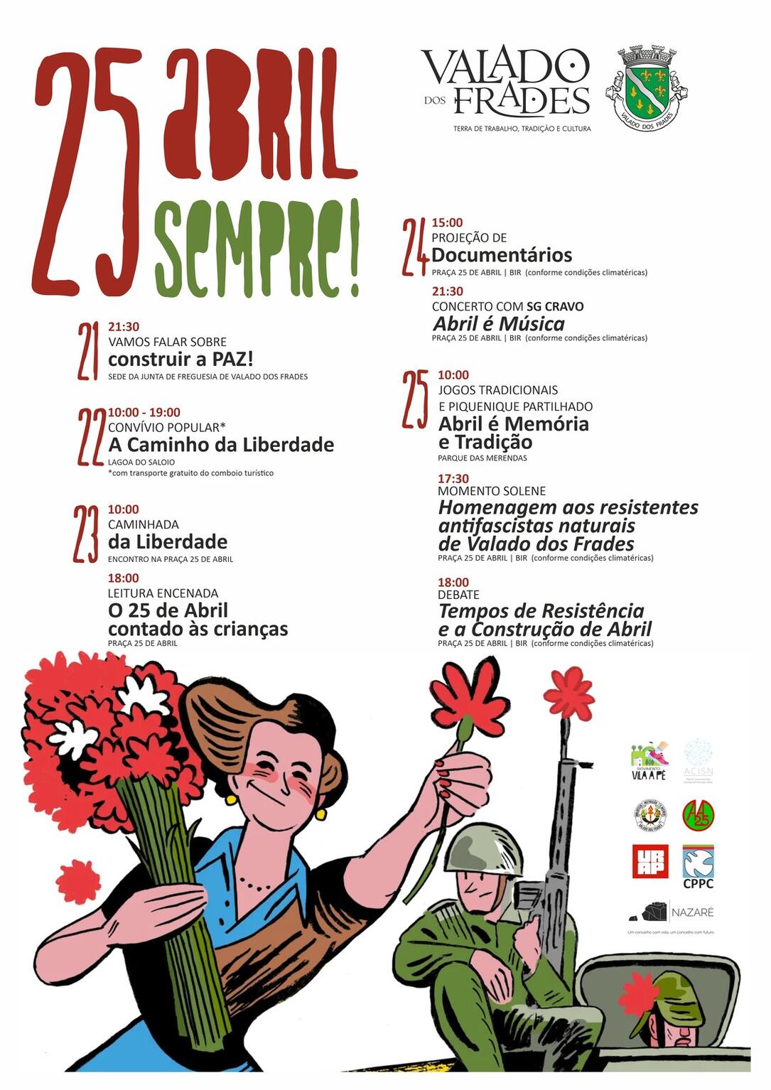 A Junta de Freguesia de Valado dos Frades organiza as comemorações do 25 de abril com várias iniciativas.