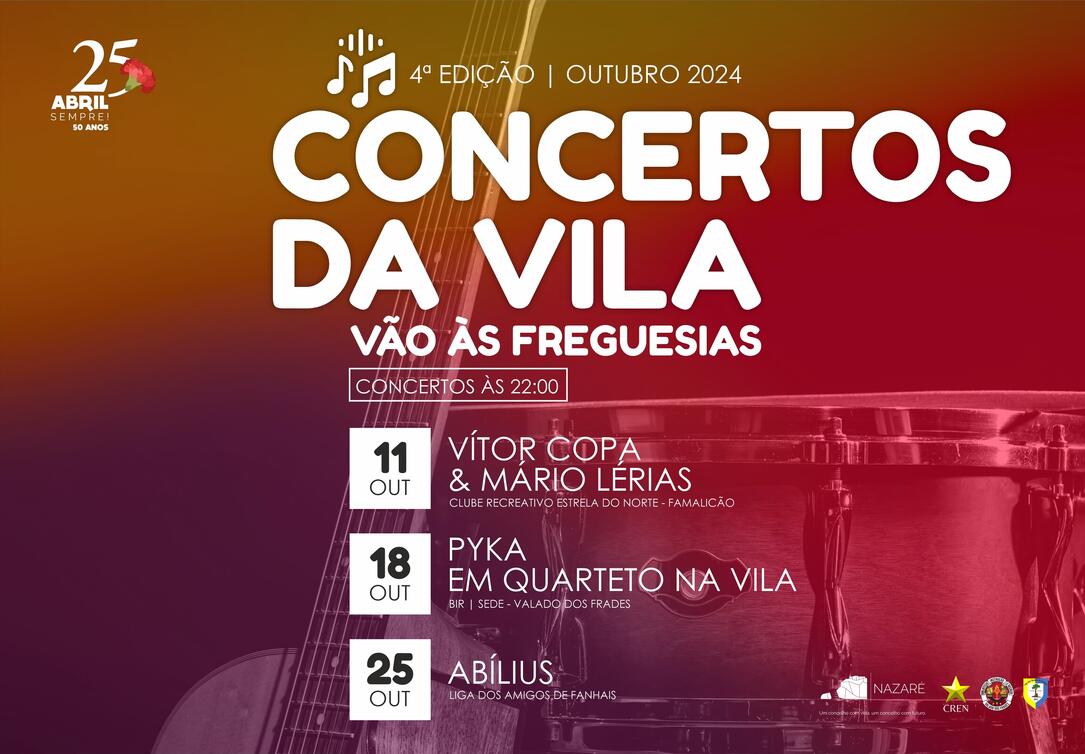Os Concertos da Vila, uma iniciativa da Câmara da Nazaré para a descentralização da oferta cultural, regressarão em outubro, com três concertos, para colorir de boas energias os serões de outono. Tome nota das datas
