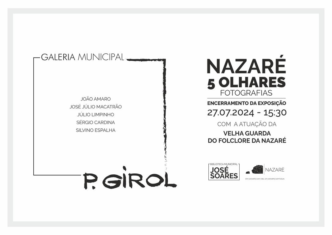 A exposição de fotografias "Nazaré - 5 olhares", de cinco artistas convidados da Galeria Municipal Paul Girol, encerrará, ao público, no próximo sábado, dia 27 de julho, às 15h30, com a atuação do Velha Guarda Folclore da Nazaré.