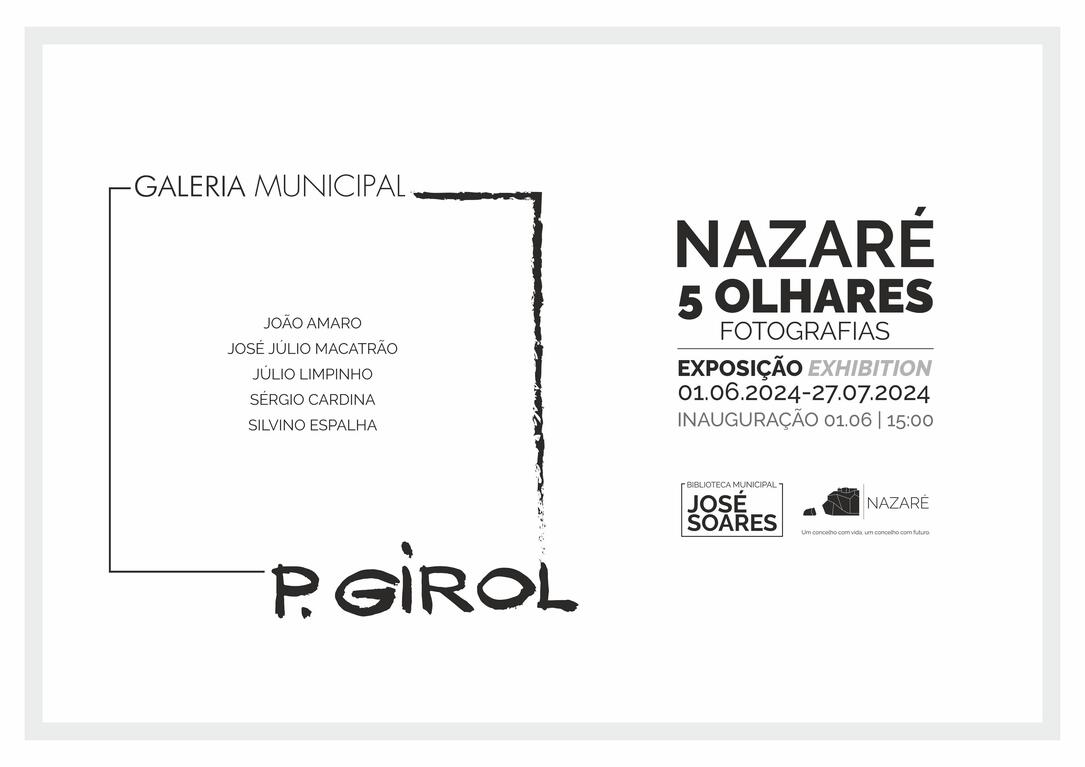 Cinco artistas nazarenos:João Amaro; José Júlio Macatrão; Júlio Limpinho; Sérgio Cardina e Silvino Espalha mostram, a público, a sua visão sobre a sua terra natal, através da fotografia, nesta exposição que recebeu o título "Nazaré - 5 olhares".