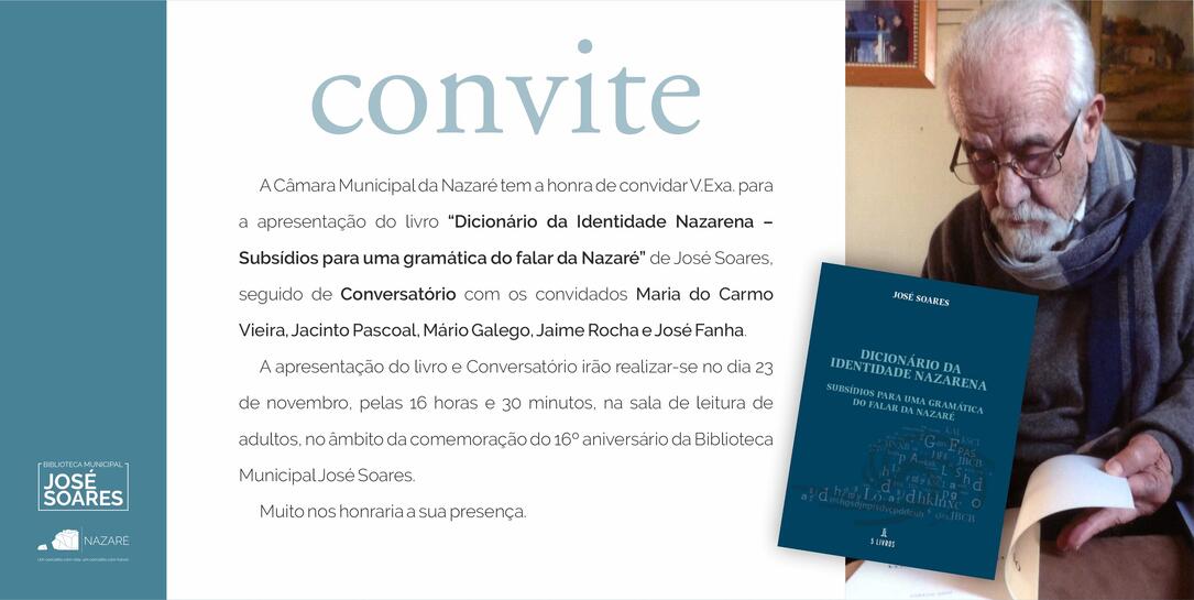 A Biblioteca Municipal José Soares convida toda a comunidade a assistir à apresentação do livro Dicionário da Identidade Nazarena - Subsídios para uma Gramática do Falar da Nazaré, uma obra que celebra a riqueza e singularidade do património linguístico nazareno.