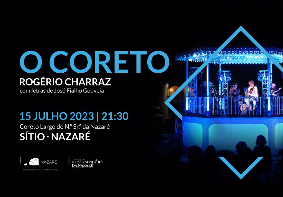 O concerto de Rogério Charraz, com letras de José Fialho Gouveia, acontece num dos simbolos do património arquitetónico da Nazaré, no Largo de Nossa Senhora, no Sítio. Está inserido na digressão que o músico anda a fazer pelo país, com concertos nos coretos existêntes em todas as localidades.