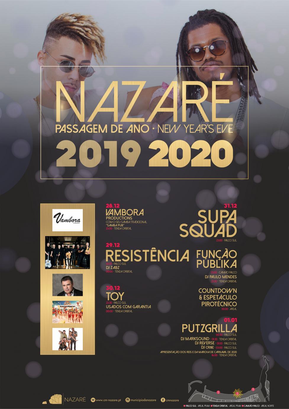 A Nazaré vai receber o novo ano com uma festa que começará a 28 de dezembro e só terminará a 1 de janeiro de 2020. Resistência, Toy e Função Públika são alguns dos convidados. Consulte o cartaz e veja quem mais irá estar presente na sua festa de despedida de 2019.